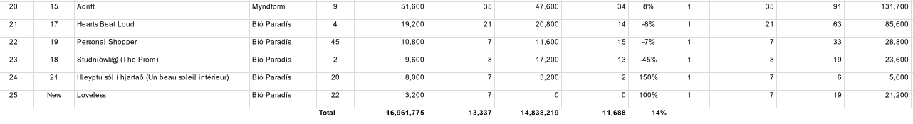 Sjáðu bíóaðsóknarlistann í heild sinni hér fyrir neðan: