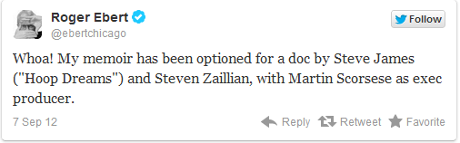 Ævisaga þekktasta gagnrýnanda okkar tíma, Roger Ebert, er í ótrúlega góðum höndum. Ekki einungis er Martin Scorsese að framleiða heimildarmynd byggða á ævisögu Ebert, heldur mun óskarsverðlaunaði handritshöfundurinn Steven Zaillan skrifa hana og vinna náið með leikstjóra myndarinnar, Steve James, sem færði okkur eina mögnuðustu heimildarmynd allra tíma, Hoop Dreams.
